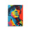 Le contraste est artistique et sophistiqué : bleu profond, rouge incandescent, jaune lumineux et touches de rose s’entrelacent pour structurer le visage et lui donner une dimension presque abstraite.